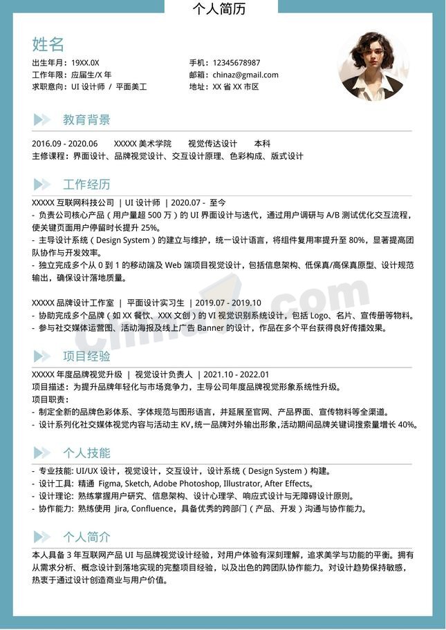 极简风UI设计师个人简历模板