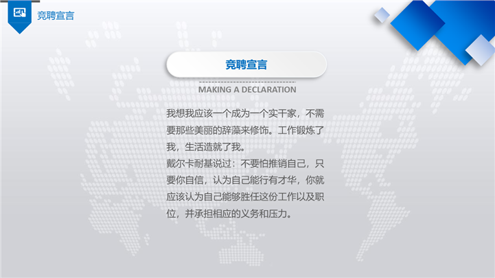 PPT简介: 竞聘报告PPT模板适用于工作岗位应聘报告书演示模板。本作品提供pptx格式文件下载,站长素材PPT大全提供精选的PPT模板素材。