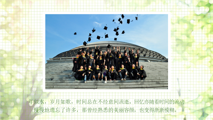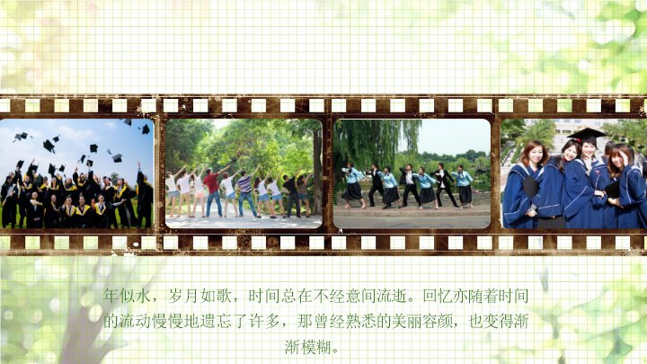 PPT简介: 毕业季相册PPT模板适用于大学毕业聚会相册演示模板。