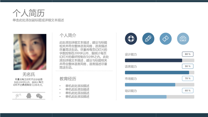 PPT简介: 求职简历PPT模板适用于工作岗位应聘报告演示模板。本作品提供pptx格式文件下载,站长素材PPT大全提供精选的PPT模板素材。