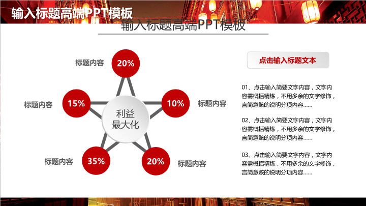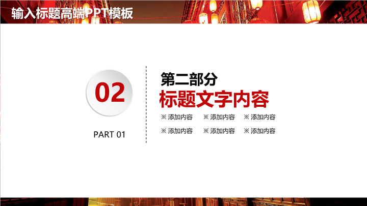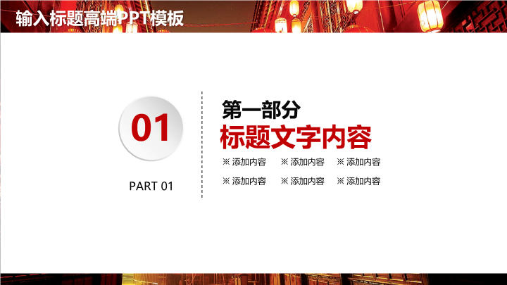 PPT简介: 大红灯笼PPT模板适用于传统节日祝福通用演示模板。本作品提供pptx格式文件下载,站长素材PPT大全提供精选的PPT模板素材。