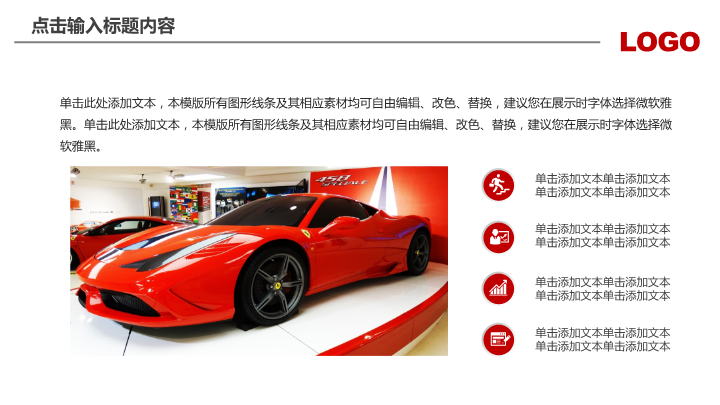 PPT简介: 跑车产品PPT模板适用于超跑汽车产品发布会演示模板。本作品提供pptx格式文件下载,站长素材PPT大全提供精选的PPT模板素材。