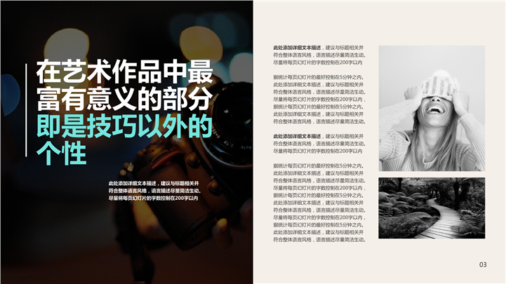 PPT简介: 摄影杂志PPT模板适用于奢侈品产品风格介绍演示模板。本作品提供pptx格式文件下载,站长素材PPT大全提供精选的PPT模板素材。