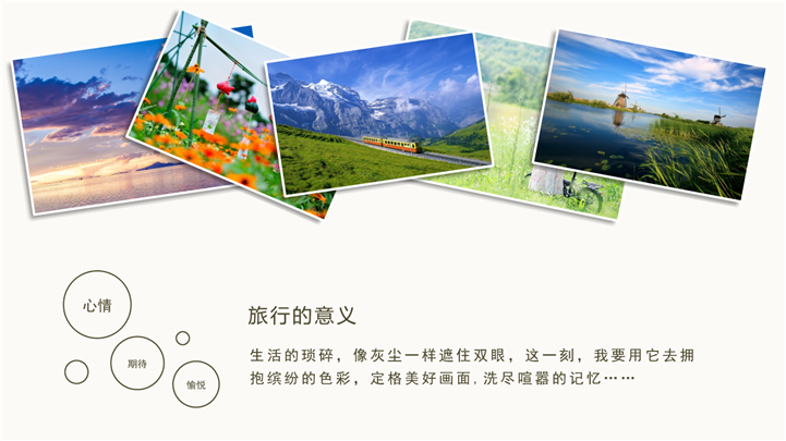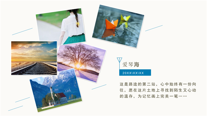 PPT简介: 日记相册PPT模板适用于个人旅行途中相册展示演示模板。