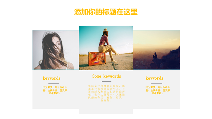 PPT简介: 旅行日记PPT模板适用于旅游旅行摄影相册画册演示模板。本作品提供pptx格式文件下载,站长素材PPT大全提供精选的PPT模板素材。