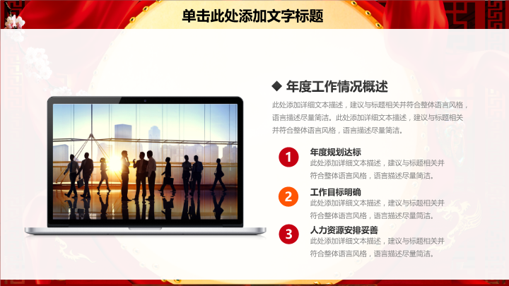 PPT简介: 赢战2018PPT模板适用于企业年度工作总结规划演示模板。本作品提供pptx格式文件下载,站长素材PPT大全提供精选的PPT模板素材。