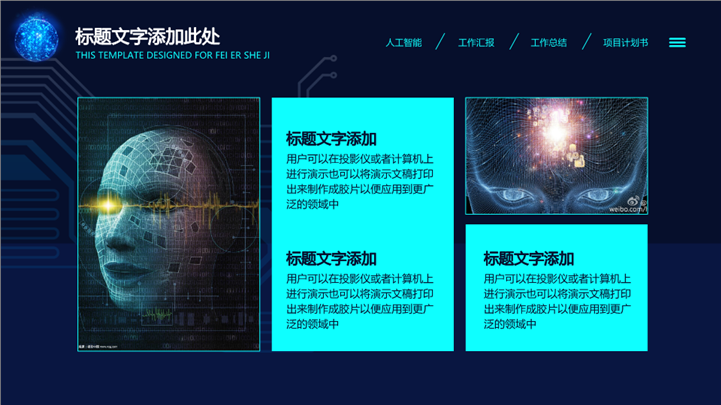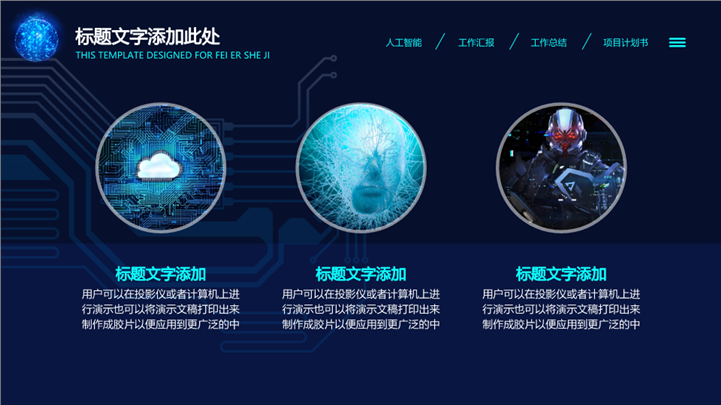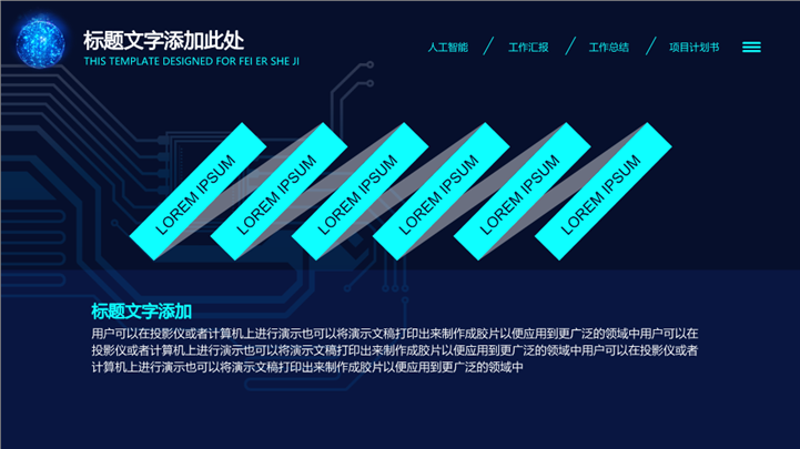 PPT简介: 智能科技PPT模板适用于互联网科技公司工作报告演示模板。本作品提供pptx格式文件下载,站长素材PPT大全提供精选的PPT模板素材。