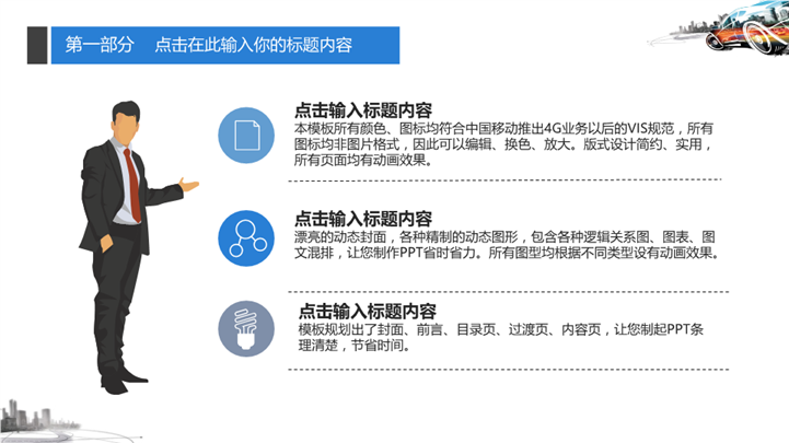 PPT简介: 汽车销售PPT模板适用于汽车行业市场宣传推广演示模板。本作品提供pptx格式文件下载,站长素材PPT大全提供精选的PPT模板素材 。