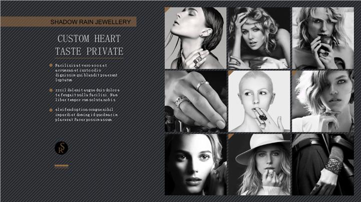 PPT简介: 品牌宣传PPT模板适用于时尚生活奢饰品品牌推广演示模板。