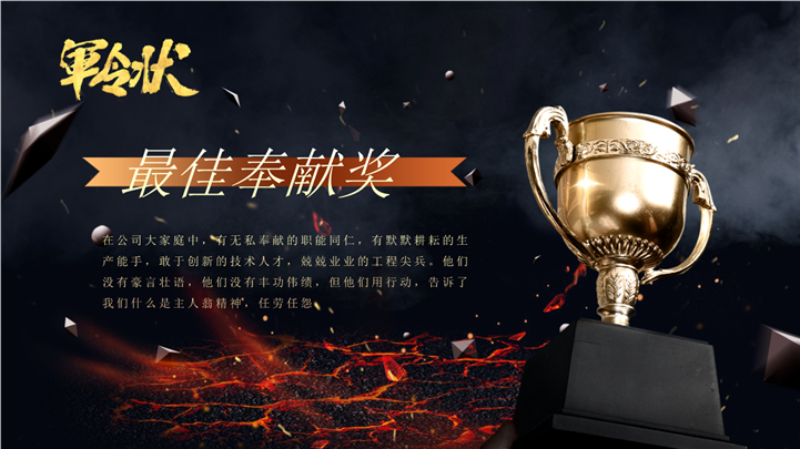 PPT简介: 颁奖典礼PPT模板适用于企业年终盛典活动报告演示模板。