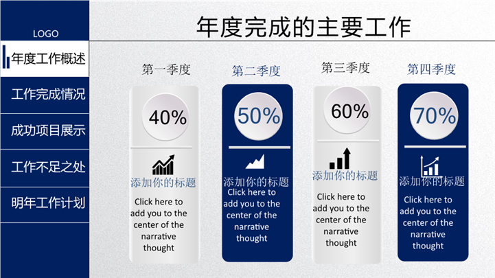 PPT简介: 工作总结PPT模板适用于企业年终工作报告总结演示模板。