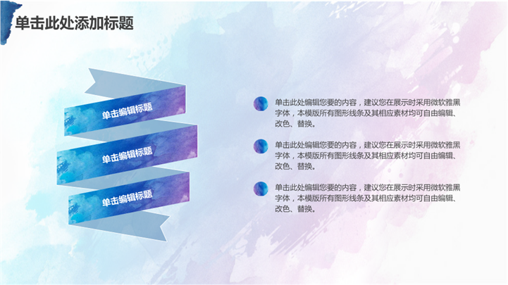 PPT简介: 水彩插画风PPT模板适用于水彩风格行业演示模板。本作品提供pptx格式文件下载,站长素材PPT大全提供精选的PPT模板素材。