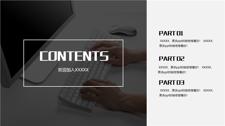 PPT简介: 简洁黑白风格部门年度工作汇报PPT模板适用于工作汇报演示模板。本作品提供pptx格式文件下载,站长素材PPT大全提供精选的PPT模板素材。
