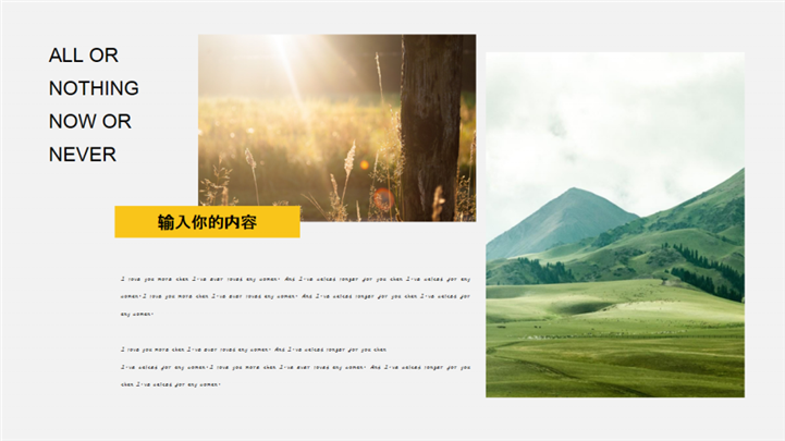 PPT简介: 清新治愈系大自然风旅行PPT模板适用于旅行记录演示模板。本作品提供pptx格式文件下载,站长素材PPT大全提供精选的PPT模板素材。