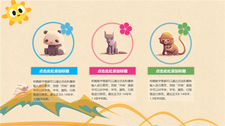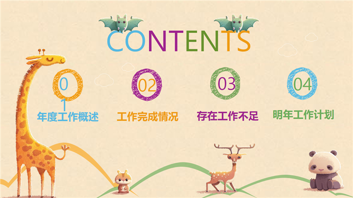 PPT简介: 创意卡通动物教师工作汇报PPT模板适用于教育行业演示模板。本作品提供pptx格式文件下载,站长素材PPT大全提供精选的PPT模板素材。