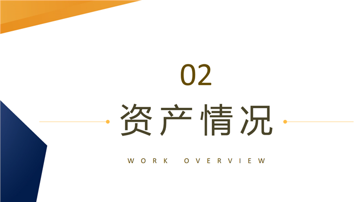 PPT简介: 金融行业毕业答辩PPT模板是毕业答辩PPT模板,以蓝色和橙色拼接几何为元素,内容目录涵盖财务工作、资产情况、存在问题和预算计划等方面,适合金融学毕业答辩、金融行业工作等方面演示使用。本作品提供pptx格式文件下载,站长素材PPT大全提供精选的PPT模板素材。
