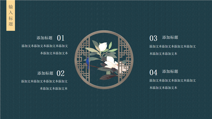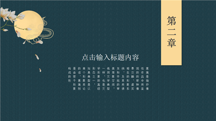 PPT简介: 中国风企业宣传介绍PPT模板是一款中国风PPT模板,整个模板结合中国风的玉兰花、小鸟、海浪、祥云,窗户等元素,极具古典美感,适用于以中国风为主题的企业宣传、公司介绍等方面演示模板。本作品提供pptx格式文件下载,站长素材PPT大全提供精选的PPT模板素材。