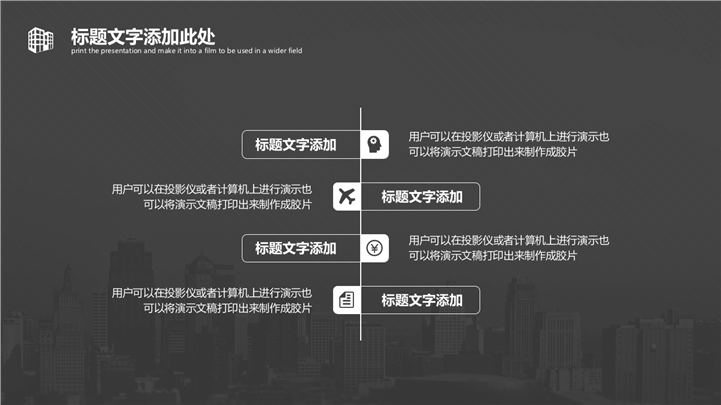 PPT简介: 黑白风格城市建设项目规划PPT模板是一款黑白风格的PPT模板,以黑色为基调贯穿整套模板,结合各种不同城市建筑元素和数据图形图表,阐述详细,框架完整,适用于城市建设项目规划演示模板。本作品提供pptx格式文件下载,站长素材PPT大全提供精选的PPT模板素材。