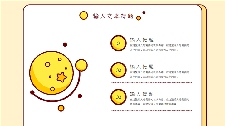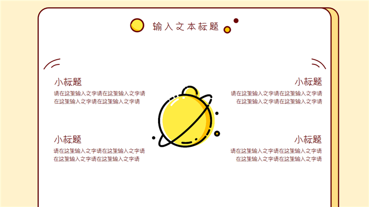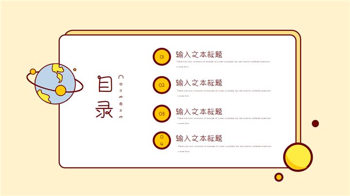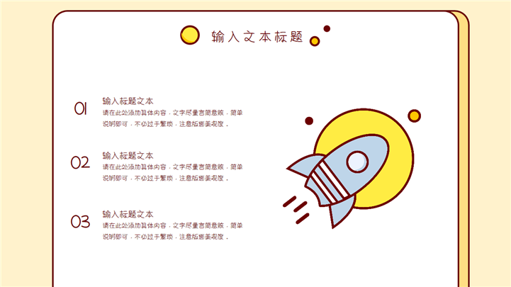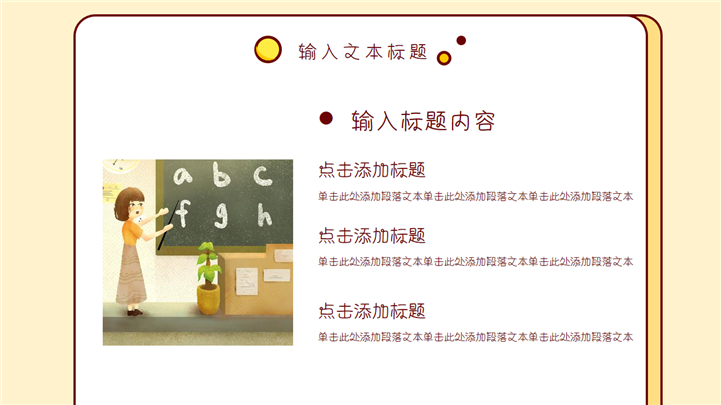 PPT简介: 简单小清新卡通教学课件通用PPT模板是一款卡通教学课件PPT模板,整套模板以淡雅清新黄色为基础色调,以黄色边框为模板背景,贯穿整套模板,包含地球、火箭、人物、星球等卡通元素,风格清新简约,通用于各年级教学课件演示模板。本作品提供pptx格式文件下载,站长素材PPT大全提供精选的PPT模板素材。
