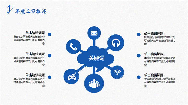 PPT简介: 蓝色简约商务计划总结会议报告企业介绍PPT模板以城市建筑内嵌几何方块为封面,蓝色为基础色调贯穿整套模板,内容涵盖年度工作概述、工作完成情况、成功项目展示、工作不足之处和明年工作计划等方面,通用于企业商务、计划总结、会议报告等方面演示模板。本作品提供pptx格式文件下载,站长素材PPT大全提供精选的PPT模板素材。