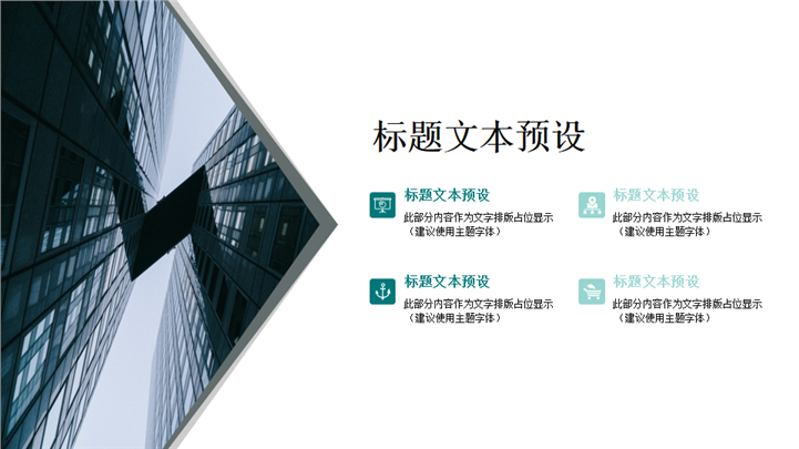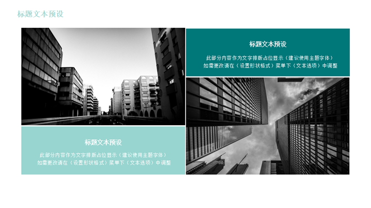 PPT简介: 城市建设风格年终总结述职报告PPT模板以几何元素为封面模板,蓝绿色为装饰元素基础色调,并贯穿整套模板,内容以目录为依据可自由编辑修改,并结合各种数据图形、图表和图标进行阐述分析,框架完整,风格商务简约,通用于年终总结、新年计划、述职报告、工作汇报等方面演示模板。本作品提供pptx格式文件下载,站长素材PPT大全提供精选的PPT模板素材。