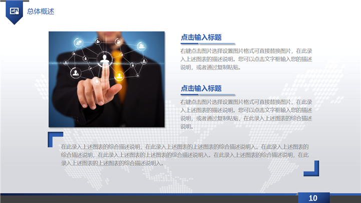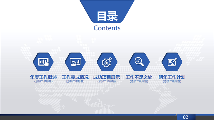 PPT简介: 蓝色高端质感企业工作总结年终汇报PPT模板以商务建筑为封面元素,蓝色为元素基础色调,内容涵盖年度工作概述、工作完成情况、成功项目展示、工作不足之处和明年工作计划等方面,风格高端且有质感,通用于各行业各企业年终工作总结汇报演示模板。本作品提供pptx格式文件下载,站长素材PPT大全提供精选的PPT模板素材。