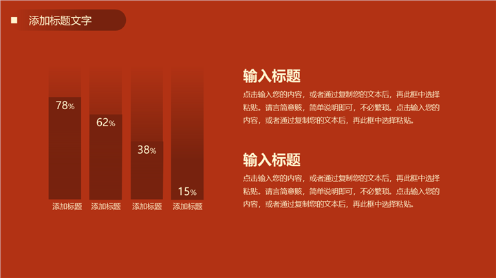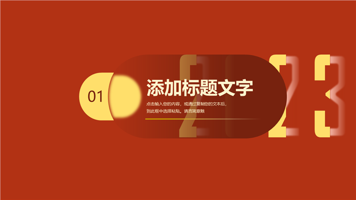 PPT简介: 喜庆年终汇报工作总结新年计划品牌PPT模板是一款年终工作总结PPT模板,以红色为基础色调,并贯穿整套模板,以创意数字2023为封面主元素,内容元素以封面保持一致,并结合各种数据图表进行分析阐述,内容文本可自由编辑修改,整体风格简约喜气,通用于各行业岗位年终工作总结、新年计划、工作汇报等方面演示模板。本作品提供pptx格式文件下载,站长素材PPT大全提供精选的PPT模板素材。