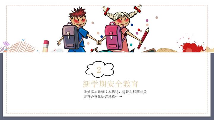 PPT简介: 手绘卡通风开学家长会班会ppt模板,低饱和度色调搭配,整体界面可爱卡通插画风格,以各种书本、笔、书包等学习元素设计,主要包含新学期校规班规、新学期安全教育、新学期学习计划、给家长们的建议等主要模块,图文排版页面为主,框架结构完整,动态播放效果。适用于我们开学啦、开学第一课、开学班会、开学家长会、开学教育、新学期班会、新学期教育、新学期教学等相关演示模板。主体文字及图片可替换修改,文字修改均可直接点击文本框进行编辑,图片更改可选中图片后单击鼠标右键插入更换图片,也可根据自身需求增加和删除。本作品提供pptx格式文件下载,站长素材PPT大全提供精选的PPT模板素材。