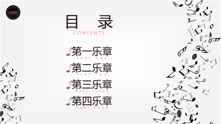 PPT简介: 黑白音符风格音乐教学课件通用PPT模板以黑白音符为封面元素,主章节页面和封面元素保持一致,内容以目录为依据,包含了各种不同乐器和音乐元素,框架完整,内容文本和插图可自由编辑修改,适用于各种不同阶段的音乐教学课件演示模板。本作品提供pptx格式文件下载,站长素材PPT大全提供精选的PPT模板素材。