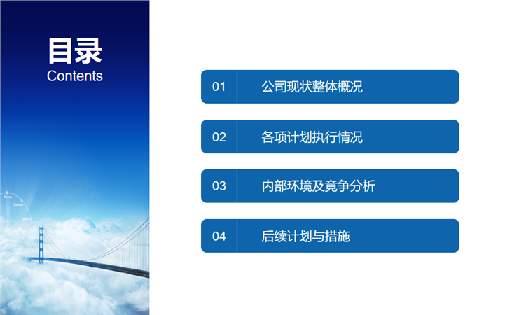 PPT简介: 通用年中工作总结汇报业绩报告年末考核PPT模板以蓝色为模板基础色调,以商务场景插图为模板封面,内容涵盖公司现状整体概况、各项计划执行情况、内部环境及竞争分析、后续计划与措施等方面,框架完整,内容文本和插图可自由编辑修改,适用于年中汇报、年终总结、年末考核、新年计划、业绩报告等方面演示模板。本作品提供pptx格式文件下载,站长素材PPT大全提供精选的PPT模板素材。