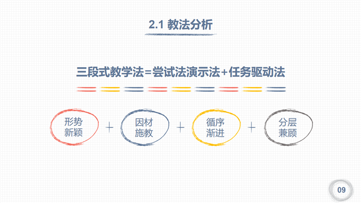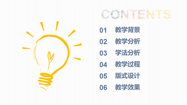 PPT简介: 手绘风教师试讲说课比赛教学课件通用PPT模板教育课件PPT模板,以格子背景为模板底纹背景,模板中的各种插图元素均已手绘风格进行呈现,内容涵盖教学背景、教学分析、学法分析、教学过程、版式设计和教学效果等方面,配色柔和,风格可爱,适用于教师试讲、课堂演讲、教学课件、说课比赛等方面演示模板。本作品提供pptx格式文件下载,站长素材PPT大全提供精选的PPT模板素材。