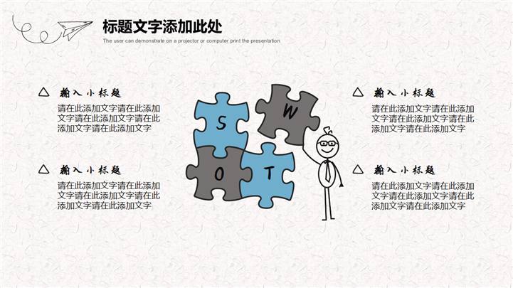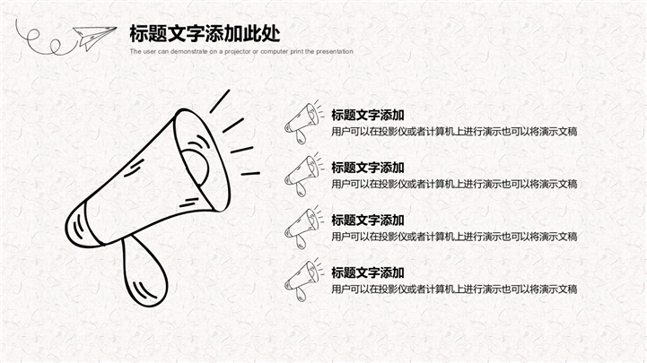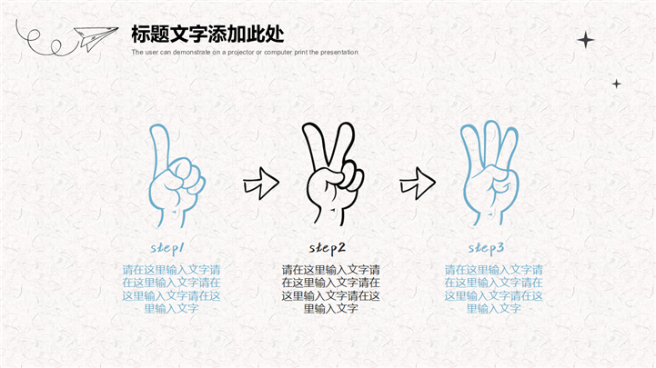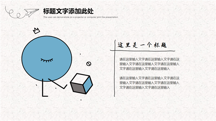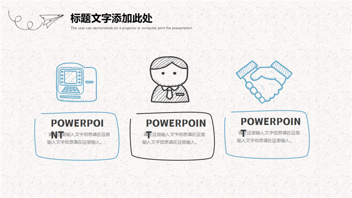 PPT简介: 蓝色创意文艺手绘风格PPT模板以大理石背景为模板底纹背景,并贯穿整套模板,包含了地球、建筑、小人、手势、纸飞机、喇叭、拼图等手绘元素,不仅富有创意,还兼具了文艺风格,适用于以手绘风格场景演示模板。本作品提供pptx格式文件下载,站长素材PPT大全提供精选的PPT模板素材。