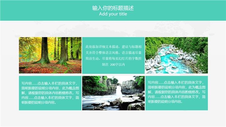PPT简介: 极简微粒体风格绿色环保主题工作总结PPT模板是一款环保主题PPT模板,以绿色和白色为基础元素色调,封面和主章节页以微粒体元素进行呈现,内容以目录为依据,结合不同的图文排版方式进行呈现,整体风格简约,适用于以环保为主题的各种工作总结汇报等方面演示模板。本作品提供pptx格式文件下载,站长素材PPT大全提供精选的PPT模板素材。