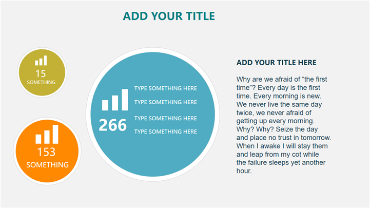 PPT简介: 扁平风格占比数据图表PPT模板是一款数据占比图表PPT模板,包含了圆环形、放大镜、试管、箭靶、购物车、齿轮等不同形状的占比数据图表,数据和内容文本均可自由编辑修改替换,共18张幻灯片,适用于各种不同占比数据分析演示模板。本作品提供pptx格式文件下载,站长素材PPT大全提供精选的PPT模板素材。