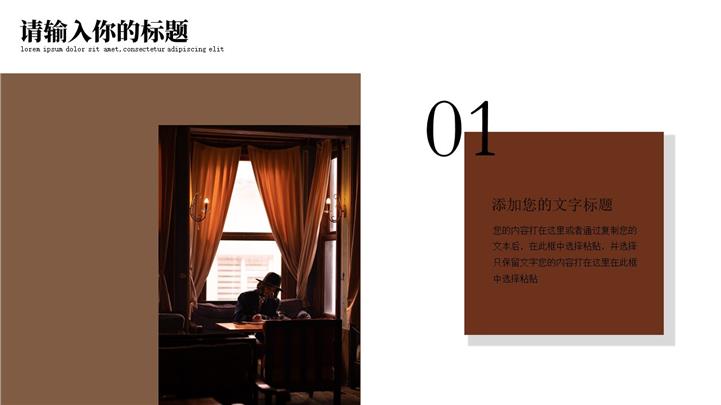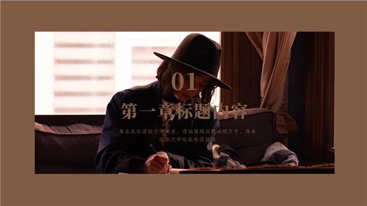PPT简介: 时尚公司介绍企业宣传ppt模板下载,咖色为主色调,时尚图片为封面设计,整体界面简约时尚风格,包含目录、小结标题、内容页感谢等主要模块,图文排版页面为主,框架结构完整,动态播放效果。适用于公司简介、公司介绍、企业介绍、企业宣传、产品介绍、产品宣传、时尚画册等相关演示模板。主体文字及图片可替换修改,文字修改均可直接点击文本框进行编辑,图片更改可选中图片后单击鼠标右键插入更换图片,也可根据自身需求增加和删除。本作品提供pptx格式文件下载,站长素材PPT大全提供精选的PPT模板素材。