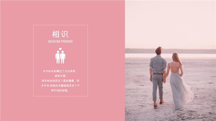 PPT简介: 520因为爱情主题活动恋爱表白PPT模板是一款520活动主题PPT模板,以粉色为元素主要配色,并贯穿整套模板,内容从相识、相知到相爱进行阐述,通过不同的图文排版方式进行呈现,内容文本和插图均可自由编辑修改替换,风格温馨浪漫,通用于各种不同主题的520活动、恋爱表白、表白求婚、恋爱回顾等方面演示模板。本作品提供pptx格式文件下载,站长素材PPT大全提供精选的PPT模板素材。