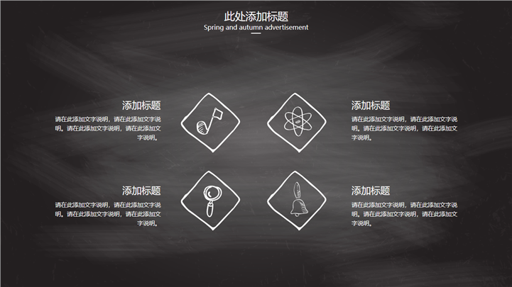 PPT简介: 黑板风手绘毕业答辩PPT模板是一款毕业答辩PPT模板,以黑板背景为模板底纹背景,并贯穿整套模板,以白色粉笔配色为模板文字和插图基本配色,内容包含放大镜、灯泡、电脑、数据图等手绘元素,内容以目录为依据,分层阐述,整体框架完整,内容丰富,通用于各院校各专业毕业论文答辩等方面演示模板。本作品提供pptx格式文件下载,站长素材PPT大全提供精选的PPT模板素材。