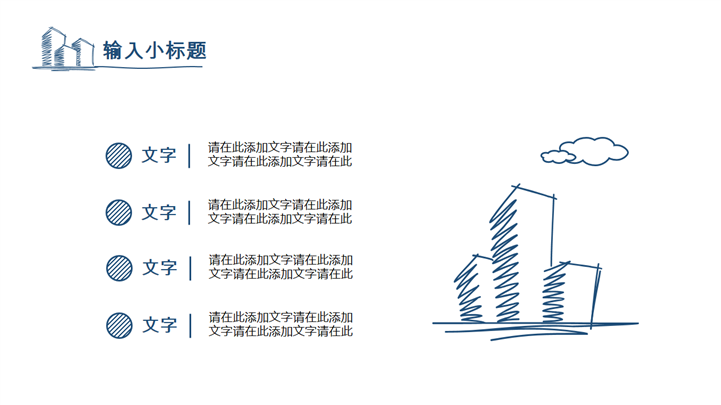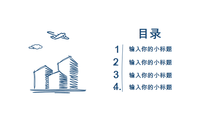 PPT简介: 蓝色手绘风商务办公通用PPT模板以蓝色为元素基础配色,封面包含白云、建筑、飞机等元素,并将其元素融合到内容页中,内容页数据图表、图形和图标均以手绘风格进行呈现,与封面配色和风格保持一致,内容以目录为依据,内容文本可自由编辑修改,框架完整,内容详实,适用于各行业岗位商务办公演示模板。本作品提供pptx格式文件下载,站长素材PPT大全提供精选的PPT模板素材。