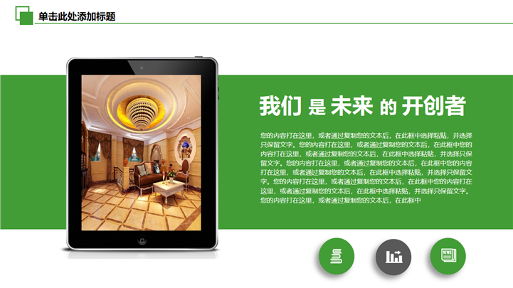 PPT简介: 绿色环保低碳家居建材PPT模板以绿色为模板元素基础色调,封面包含花草、树木、人物、飞鸟等元素,内容以目录为依据,并结合各种数据图表进行阐述分析,内容文本和插图均可自由编辑修改,整体配色和风格前后保持一致,风格清新简约,通用于绿色环保、环保低碳、家居建材等主题的年终总结、工作汇报和新年计划等方面演示模板。本作品提供pptx格式文件下载,站长素材PPT大全提供精选的PPT模板素材。