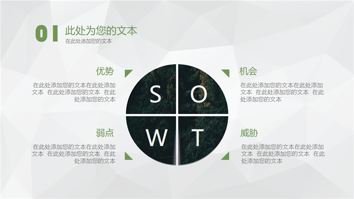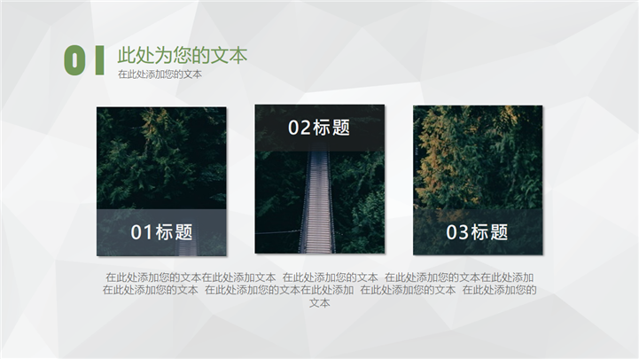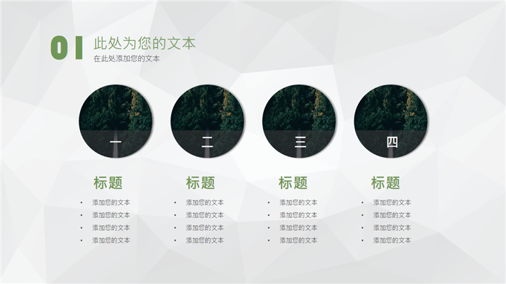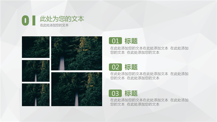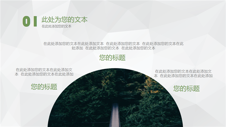 PPT简介: 文艺森林风格商业报告PPT模板以绿色森林风景摄影插图搭配标题为封面,并将其插图元素融合到整套模板中,内容以目录为依据,并结合各种不同图文排版方式和数据图表进行阐述分析,整体配色和风格前后保持一致,极具文艺森林风气息,共27张幻灯片,适用于各种文艺风格项目的商业报告等方面演示模板。本作品提供pptx格式文件下载,站长素材PPT大全提供精选的PPT模板素材。