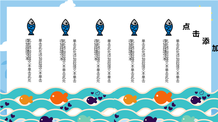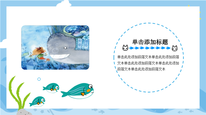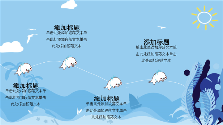 PPT简介: 海洋之梦小清新蓝色梦幻卡通通用PPT模板以蓝色为模板基础配色,包含大海、海水、浪花、海星、贝壳、海豚、鱼儿等卡通风格元素,内容以目录为依据,并结合各种图文排版方式进行呈现,内容文本和插图均可自由编辑修改替换,风格可爱清新,配色柔和,适用于各种以海洋风格为主题的教育教学课件等方面演示模板。本作品提供pptx格式文件下载,站长素材PPT大全提供精选的PPT模板素材。