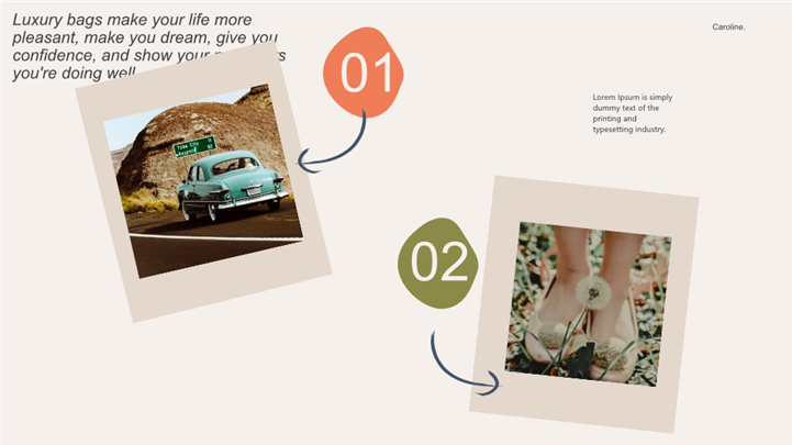 PPT简介: 明亮色调创意抽象艺术范画册宣传ppt模板,明亮色调为主色调,整体界面时尚艺术风格,适用于时尚杂志、品牌宣传、时装、品牌、宣传、产品展示等相关主题设计应用。主体文字及图片可替换修改,文字修改均可直接点击文本框进行编辑,图片更改可选中图片后单击鼠标右键插入更换图片,也可根据自身需求增加和删除。本作品提供PPTX格式文件,转载请注明出处!