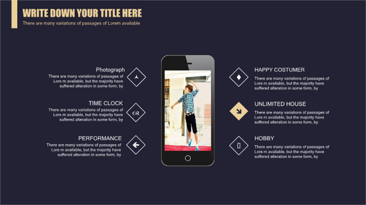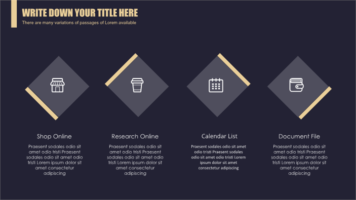 PPT简介: 黑金高端商务报告PPT模板以黑色为模板基础背景色调,以金色为文字色调,内容以目录为依据,并结合各种数据图形和图表进行阐述分析,框架完整,内容详实,内容文本和插图均可自由编辑修改替换,风格简约高端,适用于各行业岗位商务报告等方面演示模板。本作品提供pptx格式文件下载,站长素材PPT大全提供精选的PPT模板素材。