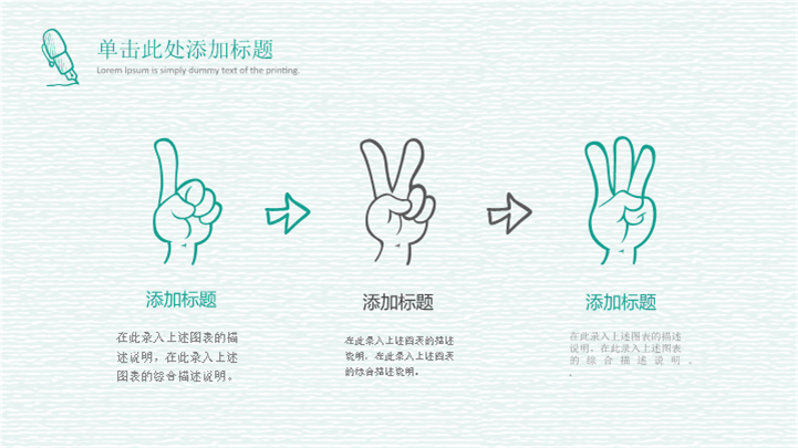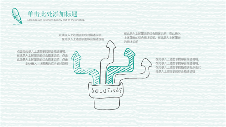 PPT简介: 手绘风格手绘通用PPT模板是一款手绘风格PPT模板,以绿色为模板基础色调,包含灯泡、箭头、手势、符号等各种手绘风格为内容元素,内容以目录为依据,并结合各种图文排版方式进行呈现,风格简约清新,通用于各种手绘主题风格的工作总结、新年计划、教学课件等方面演示模板。本作品提供pptx格式文件下载,站长素材PPT大全提供精选的PPT模板素材。
