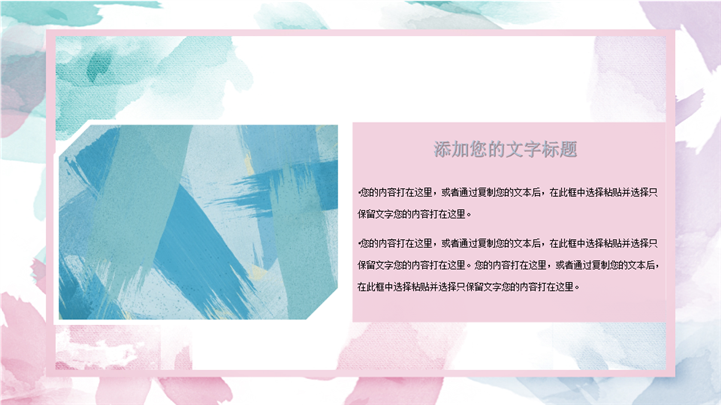 PPT简介: 马卡龙水彩晕染风营销策划ppt模板,马卡龙色为主色调,整体界面小清新风格,主要包含品牌介绍、产品展示、营销策略、未来展望 等模块内容,适用于企业产品宣传、产品介绍、产品宣传、产品发布会、计划总结、商务总结、工作总结、总结汇报、商务汇报等相关主题设计应用。主体文字及图片可替换修改,文字修改均可直接点击文本框进行编辑,图片更改可选中图片后单击鼠标右键插入更换图片,也可根据自身需求增加和删除。本作品提供PPTX格式文件,转载请注明出处!