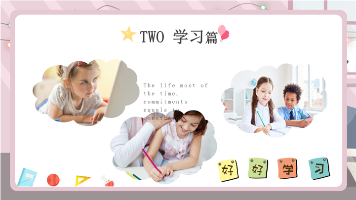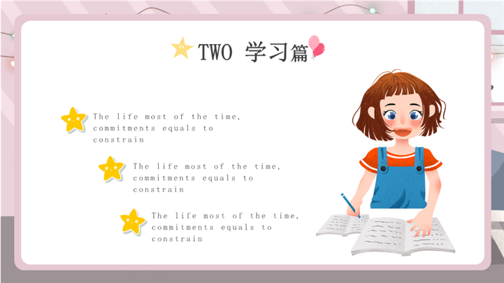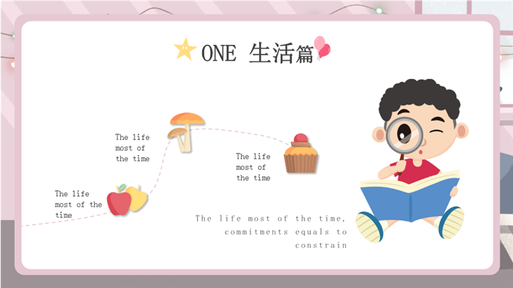 PPT简介: 淡粉色插画风寒假生活汇报ppt模板,淡粉色为主色调,整体界面插画风格,主要包含生活篇、学习篇、娱乐篇、总结篇等模块内容,适用于我的寒假生活、寒假生活、快乐寒假、寒假时光、寒假计划、寒假收获、精彩寒假等相关主题设计应用。主体文字及图片可替换修改,文字修改均可直接点击文本框进行编辑,图片更改可选中图片后单击鼠标右键插入更换图片,也可根据自身需求增加和删除。本作品提供PPTX格式文件,转载请注明出处!