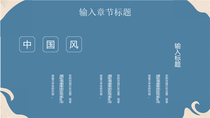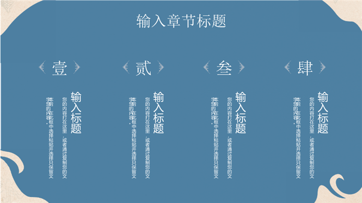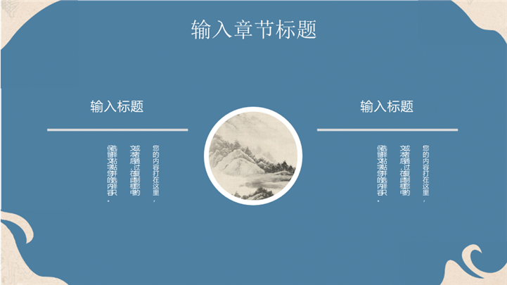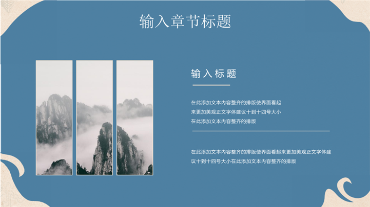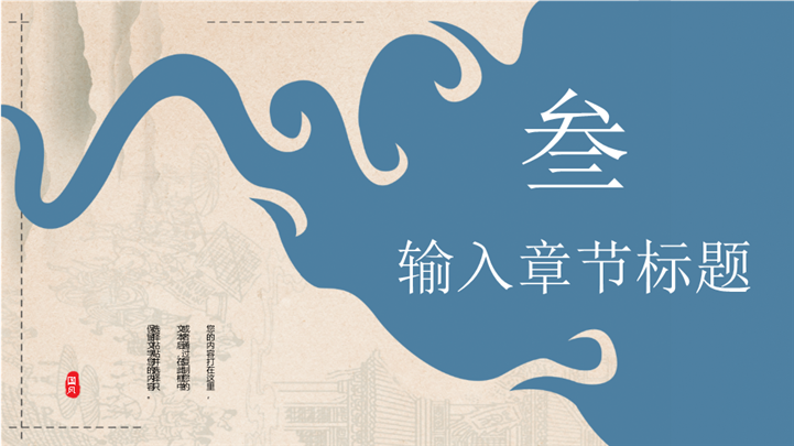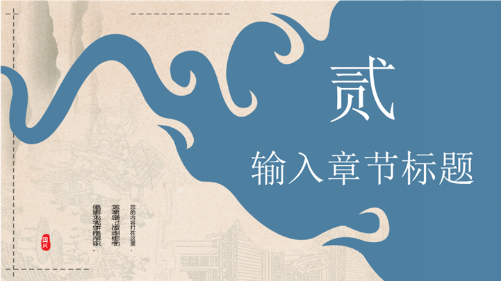 PPT简介: 云水禅心极简古风意境商务通用ppt模板,雾霾蓝为主色调,整体界面极简古风风格,适用于中国传统文化、历史研究、国风艺术与现代文化的融合、国风艺术推广、国风艺术展览等相关主题设计应用。主体文字及图片可替换修改,文字修改均可直接点击文本框进行编辑,图片更改可选中图片后单击鼠标右键插入更换图片,也可根据自身需求增加和删除。本作品提供PPTX格式文件,转载请注明出处!