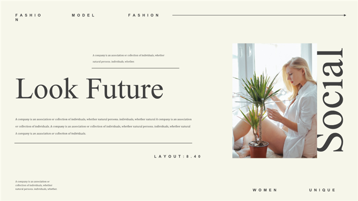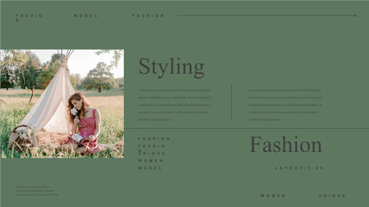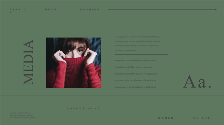 PPT简介: 时尚杂志风格宣传画册ppt模板,墨绿色为主色调,整体界面极简时尚风格,适用于工时尚杂志、品牌宣传、时装、品牌、宣传、产品展示等相关主题设计应用。主体文字及图片可替换修改,文字修改均可直接点击文本框进行编辑,图片更改可选中图片后单击鼠标右键插入更换图片,也可根据自身需求增加和删除。本作品提供PPTX格式文件,转载请注明出处!