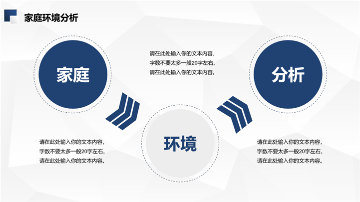 PPT简介: 微立体几何大学生职业生涯规划ppt模板,深蓝色为主色调,整体界面极简商务风格,主要包含自我评估、职业认知、目标定位、实施策略、评估调整等模块内容,适用于工大学生规划、职业规划、职业生涯规划、职业生涯、职业规划培训、个人职业发展规划、职业成长指导等相关主题设计应用。主体文字及图片可替换修改,文字修改均可直接点击文本框进行编辑,图片更改可选中图片后单击鼠标右键插入更换图片,也可根据自身需求增加和删除。本作品提供PPTX格式文件,转载请注明出处!