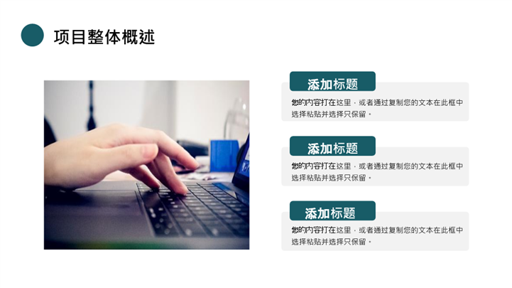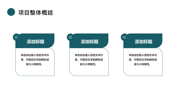 PPT简介: 墨绿色大气极简商业计划书ppt模板,墨绿色为主色调,整体界面大气商务风格,主要包含项目整体概述、市场前景分析、开发进度规划、投资收益说明等模块内容,适用于商业计划书、企业计划书、项目计划书、企业项目计划书、项目建设计划书、商业计划概述、市场分析、产品与服务介绍、营销策略、运营计划、财务规划、风险评估、项目招商、招商计划、计划书、商业计划书、商业计划、招商计划书等相关主题设计应用。主体文字及图片可替换修改,文字修改均可直接点击文本框进行编辑,图片更改可选中图片后单击鼠标右键插入更换图片,也可根据自身需求增加和删除。本作品提供PPTX格式文件,转载请注明出处!
